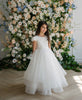 Lara - Off-White Girl's Communion Dress/Flower Girl Dress with Floral Lace Bodice and Cap Sleeves with a Tiered Horsehair Skirt
